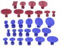 Zestaw naprawczy przeznaczony do usuwania wgnieceń w karoserii samochodu. Zestaw jest łatwy w użyciu, a co najważniejsze w 100% bezpieczny dla lakieru samochodowego. W skład zestawu wchodzi młotek bezwładnościowy do wyciągania wgnieceń, komplet 28 grzybków o różnych kształtach i rozmiarach, 7 lasek kleju termotopliwego oraz szpachelka do usuwania kleju.
